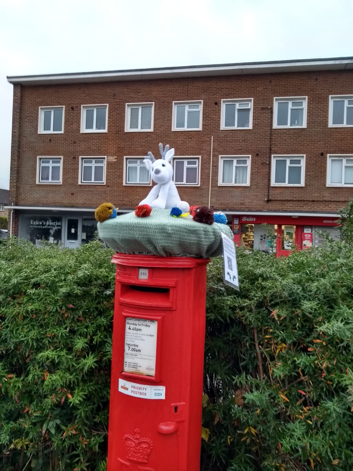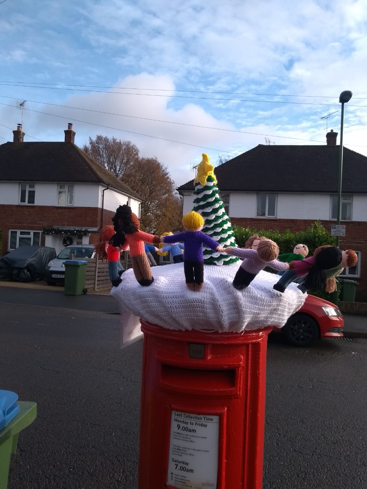 This is just one of 12 postbox toppers that are suddenly appearing about Horsham. So far they may be found in Clarence Road, Chesworth Close, Highwood village, Bartholomew Road, Rushams Road & Blackbridge Lane. There are more to come, so will you see them all.